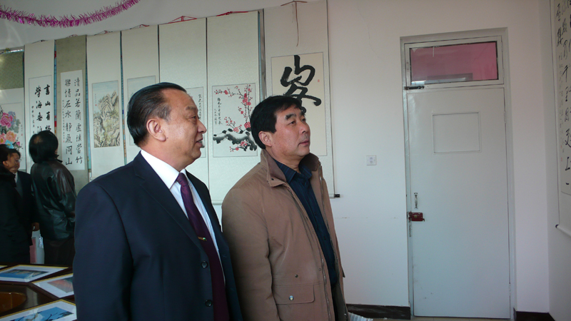 董事長(zhǎng)張?zhí)m柱陪同建設(shè)局領(lǐng)導(dǎo)參觀十周年書(shū)畫(huà)展